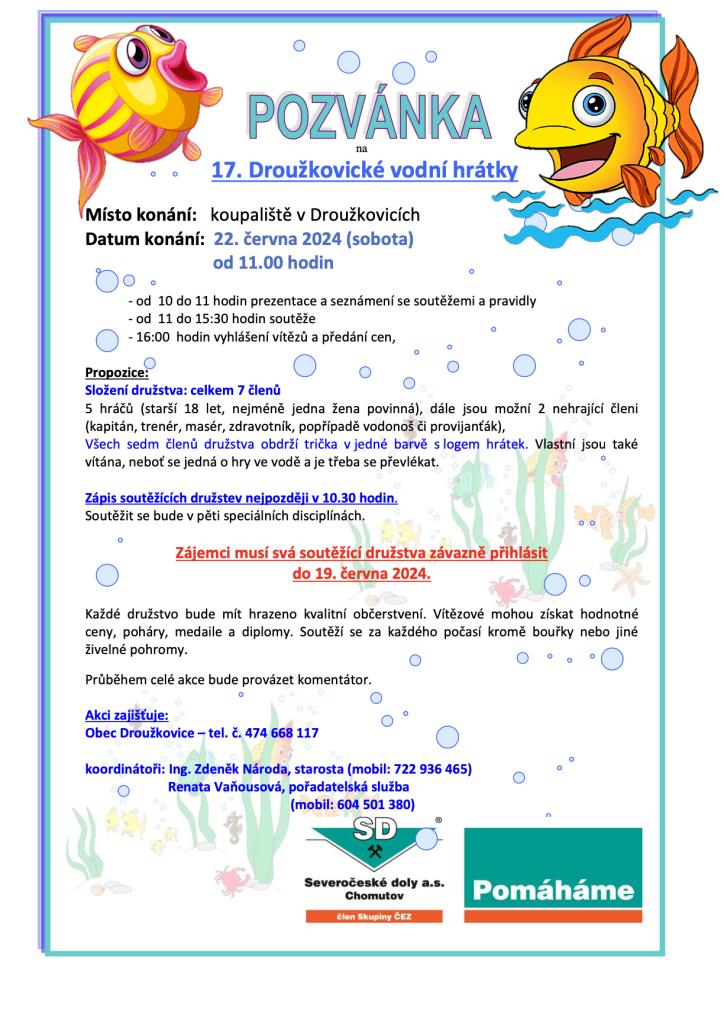 V sobotu 22.6.2024 od 11:00 hodin na koupališti