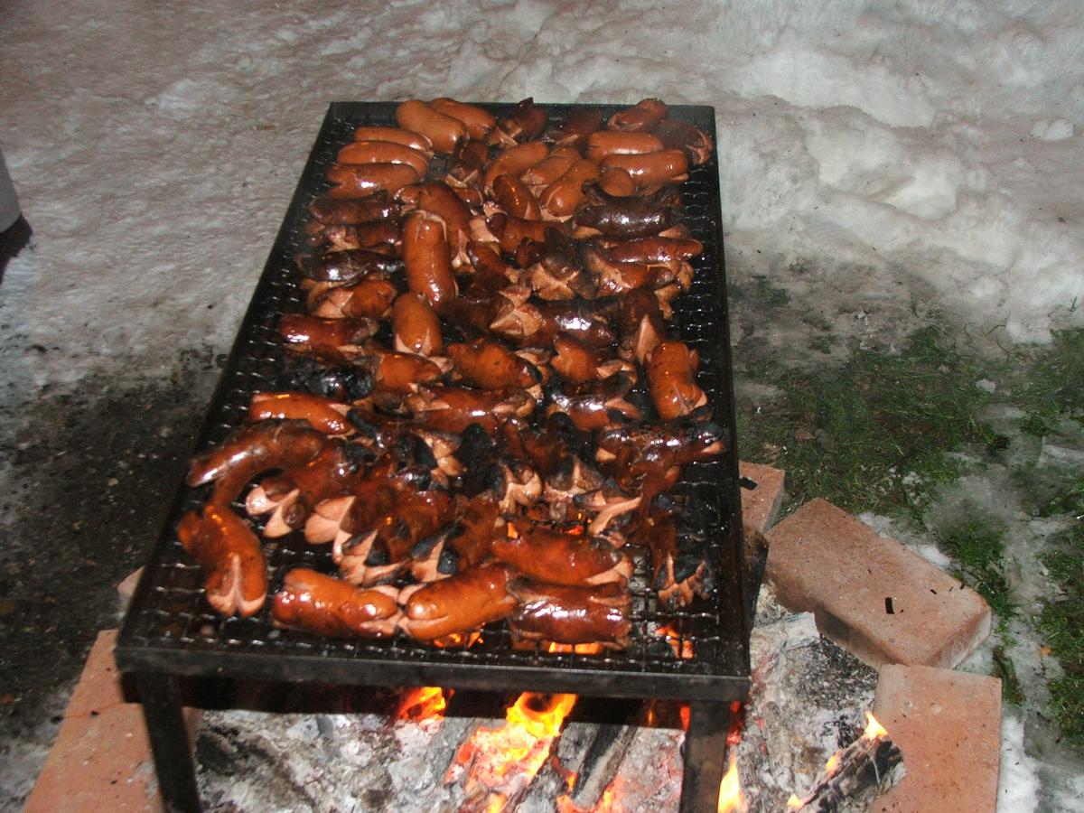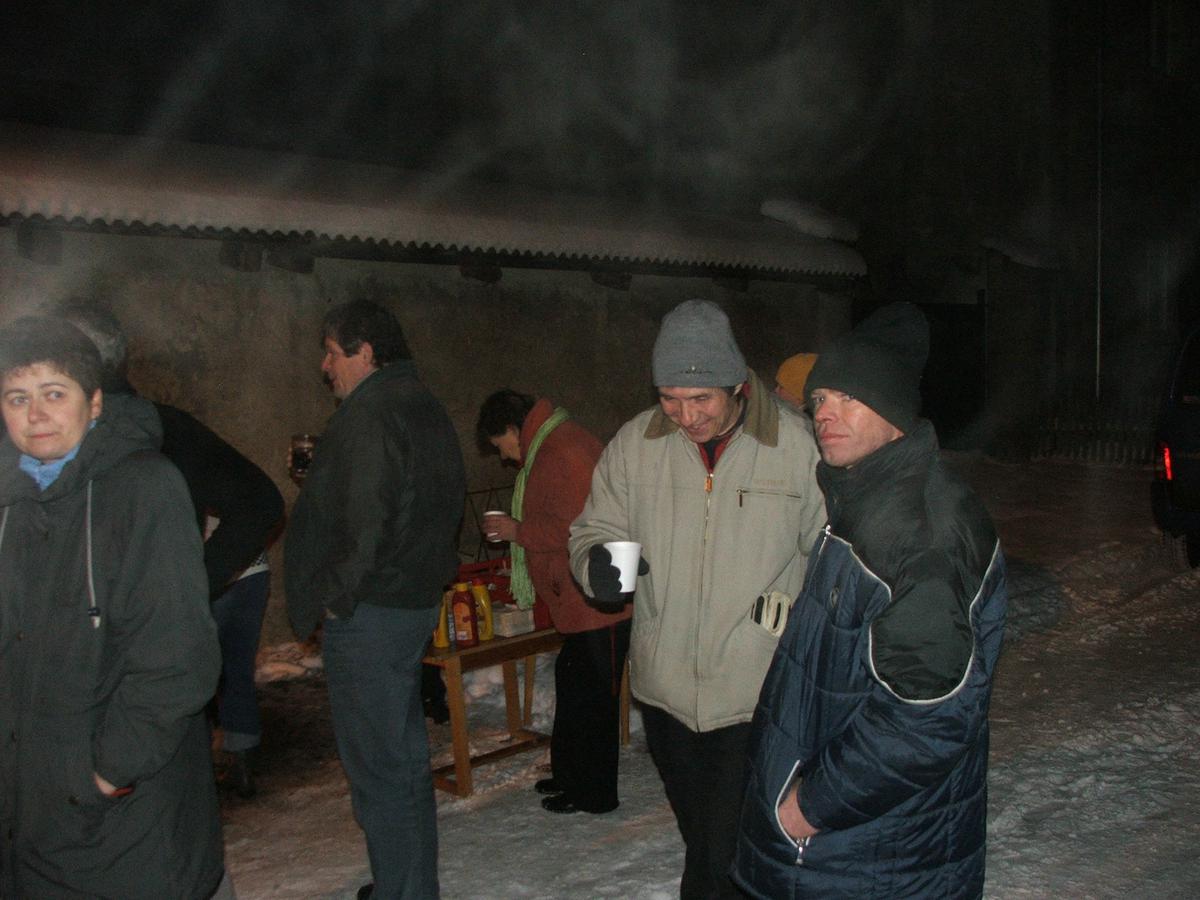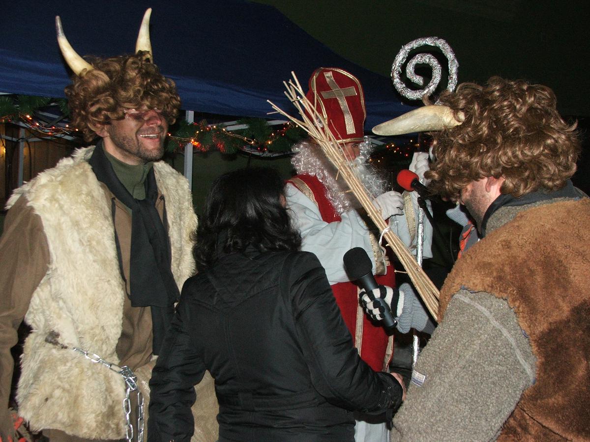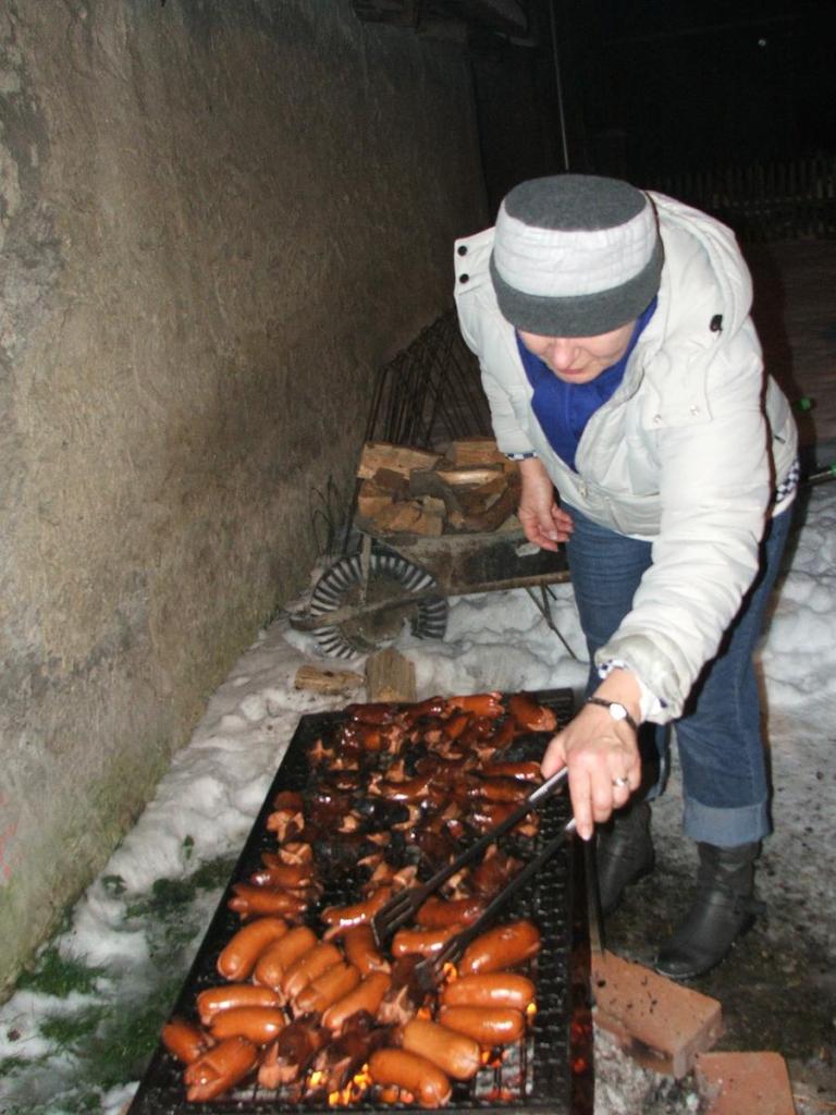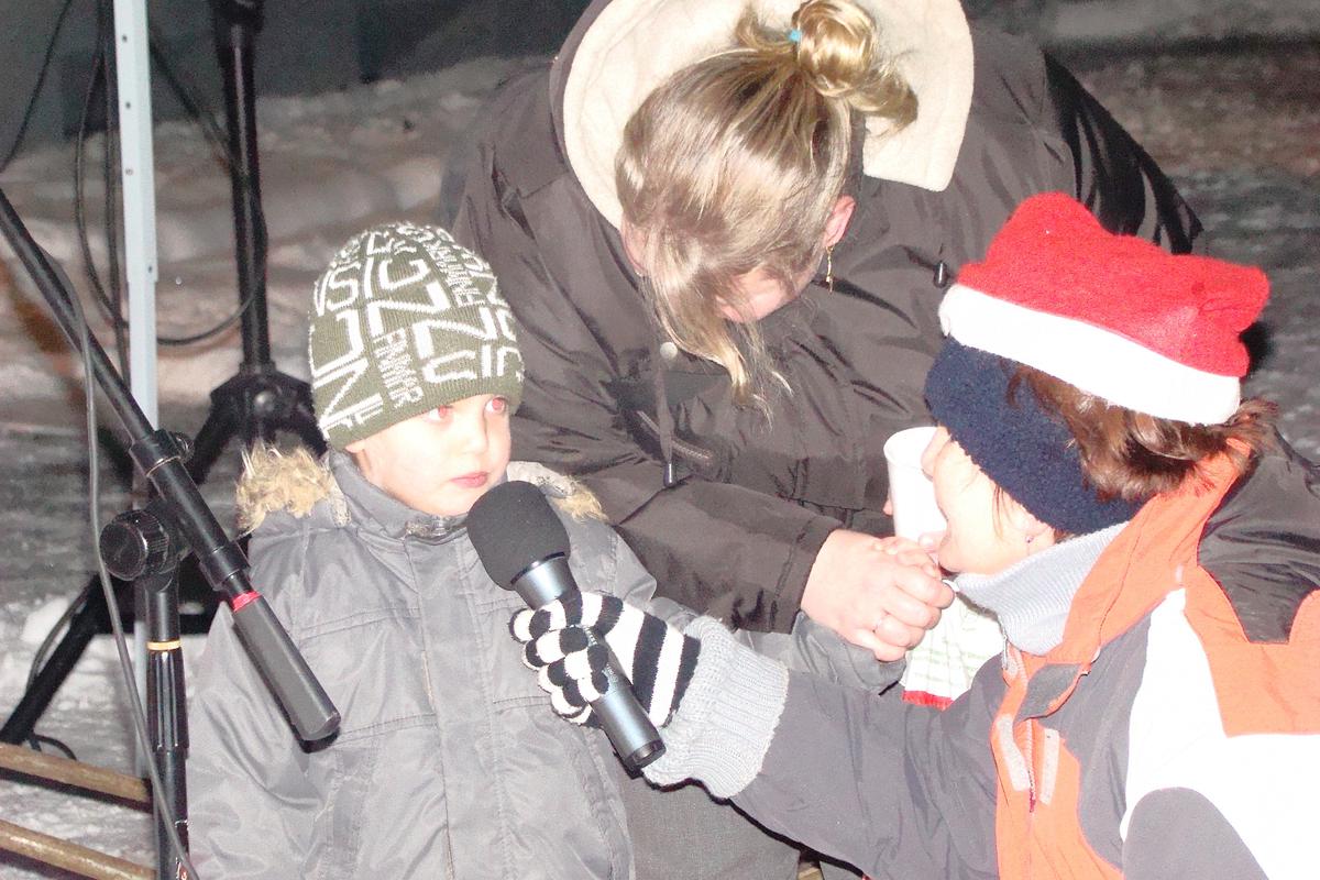 Po přehlídce umění divadelního a tvořivého jsme se přemístili před KD na náves, kde na nás již čekaly upečené buřty, svařák, pro děti nealkoholický punč a horký čaj a samozřejmě zábava pod vedením Jarušky Válkové a Tomáše Schauera. Ti nám ukrátili čekání na Mikuláše s čerty a nadílku pro hodné děti.
